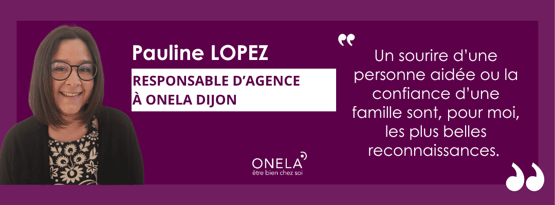 Arrivée chez ONELA en tant que Responsable de secteur, Pauline occupe aujourd’hui le poste de Responsable d’agence à Dijon. Une évolution qui reflète son engagement, sa passion pour l’accompagnement à domicile et son investissement au quotidien auprès des bénéficiaires comme de ses équipes.